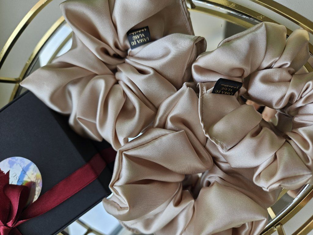 Saténová scrunchie minimalizuje tření, netahá, nezanechává na vlasech otlaky a pomáhá chránit vlasy před lámáním. Ideální pro každodenní nošení – krásná, praktická a zároveň pohodlná.