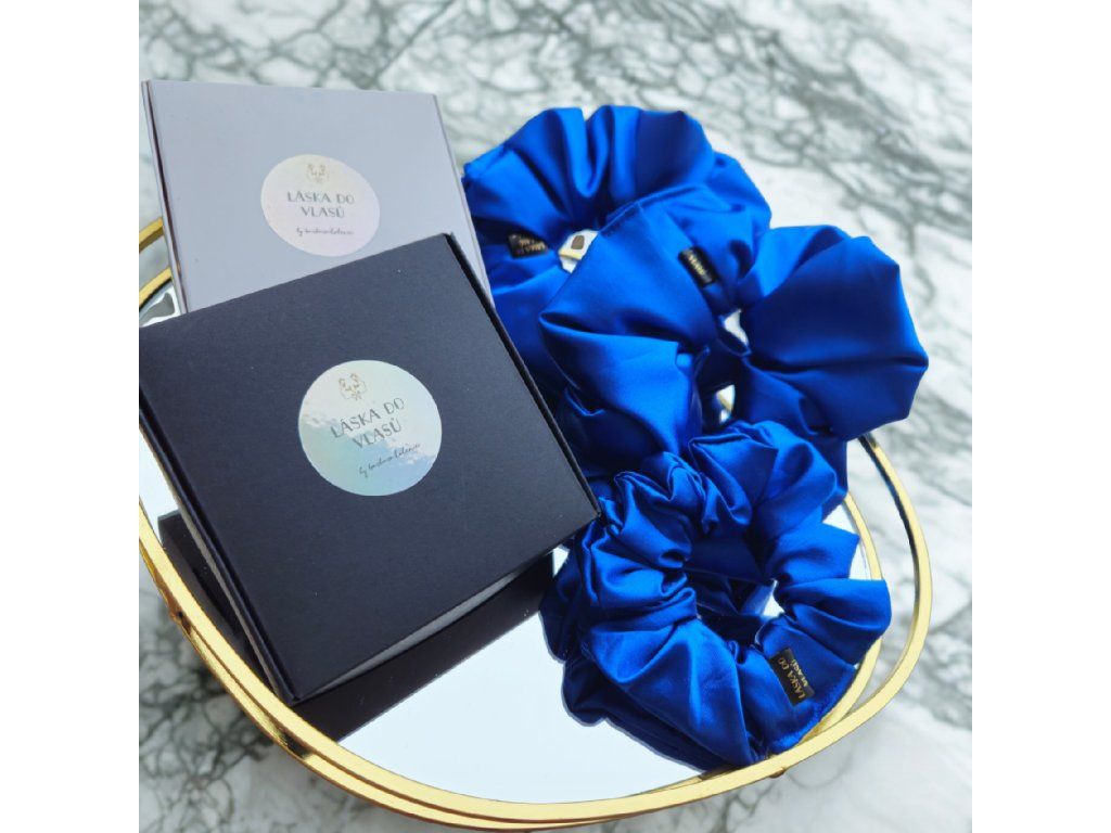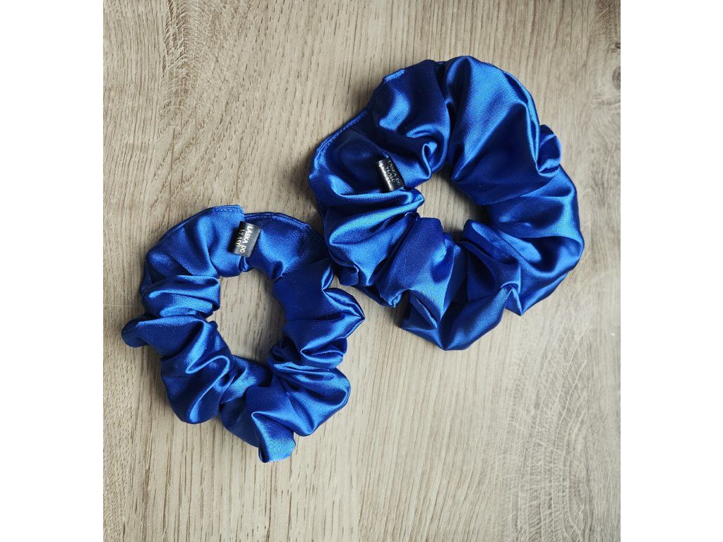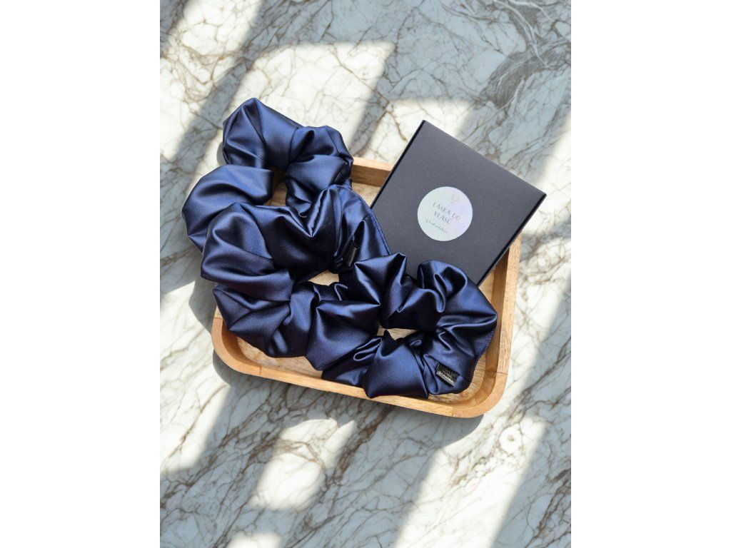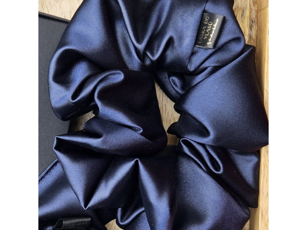 Nadčasová tmavě modrá scrunchie působí jemně a sofistikovaně. Hladký satén chrání vlasy před lámáním a třepením.